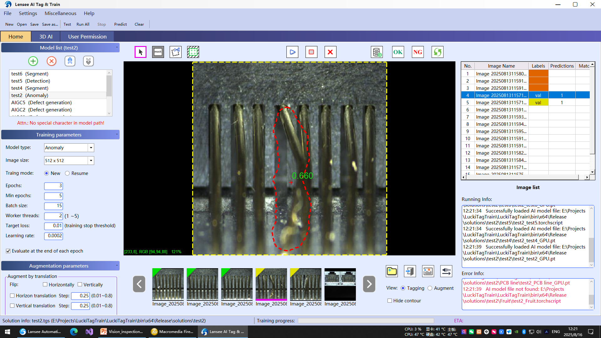 1. Our AI app: AI plays a crucial role in smart manufacturing (Industry 4.0). Our team has developed a proprietary AI platform specifically designed for industrial defect detection. Powered by an intuitive view of augmented images, this software supports few-shot tagging and training for mainstream models, including object detection, segmentation, classifier, anomaly detection, and AIGC-driven defect generation—significantly enhancing vision capabilities in smart manufacturing. With our app, users need only 3 to 8 training images to create an accurate model for defect and anomaly detection, minimizing false positives. The entire tagging and training process can be completed in just a few minutes.
